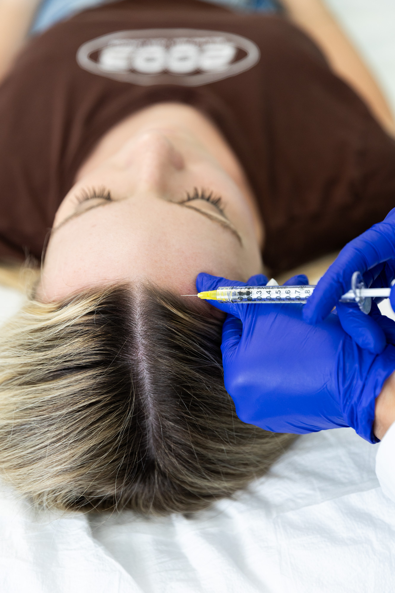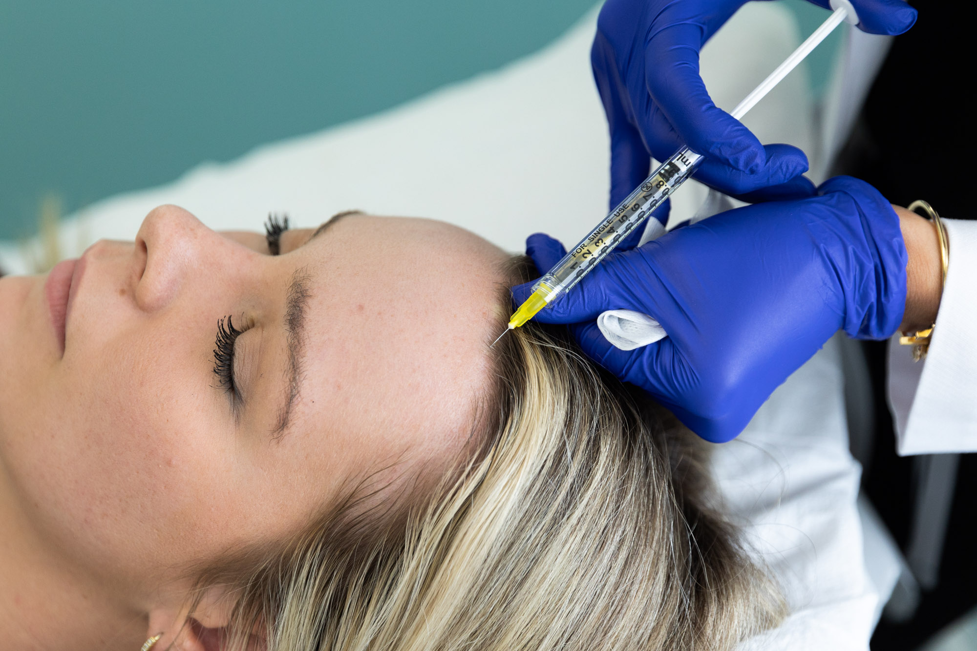 Before your treatment, your provider will clean the skin on your scalp and apply a topical numbing solution. For hair injections, our provider will draw blood from your arm and put it into a centrifuge where it will spin fast enough to isolate the necessary materials. They’ll then apply the injections into different spots on your scalp to encourage new growth.